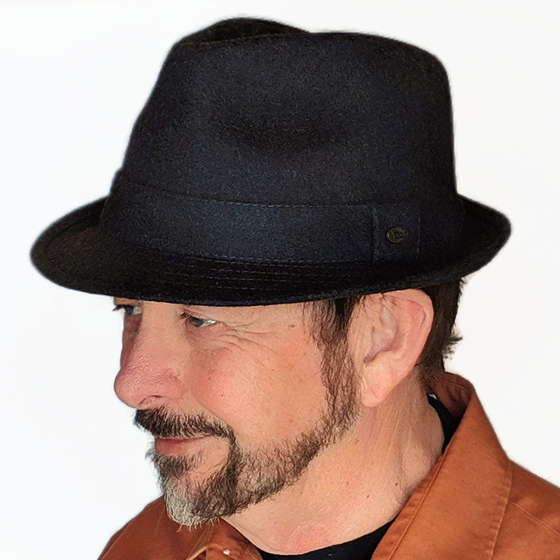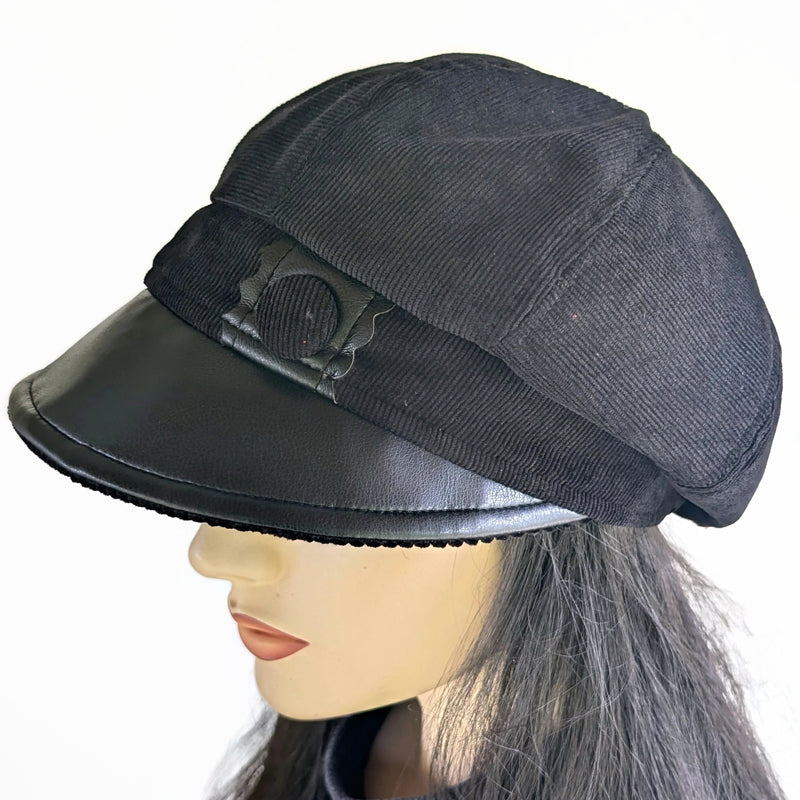 $7.95 CADBaggy Newsboy Fashion Cap in black with black vegan leather trim, relaxed fit