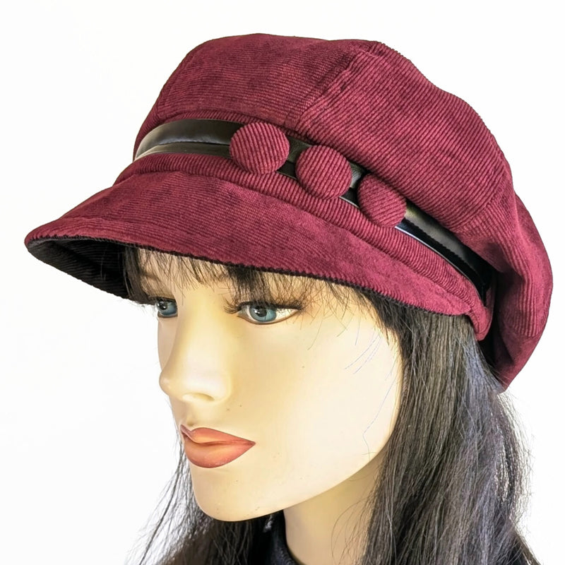 FreeBoho Fashion Cap in rich burgundy with black trim, relaxed fit