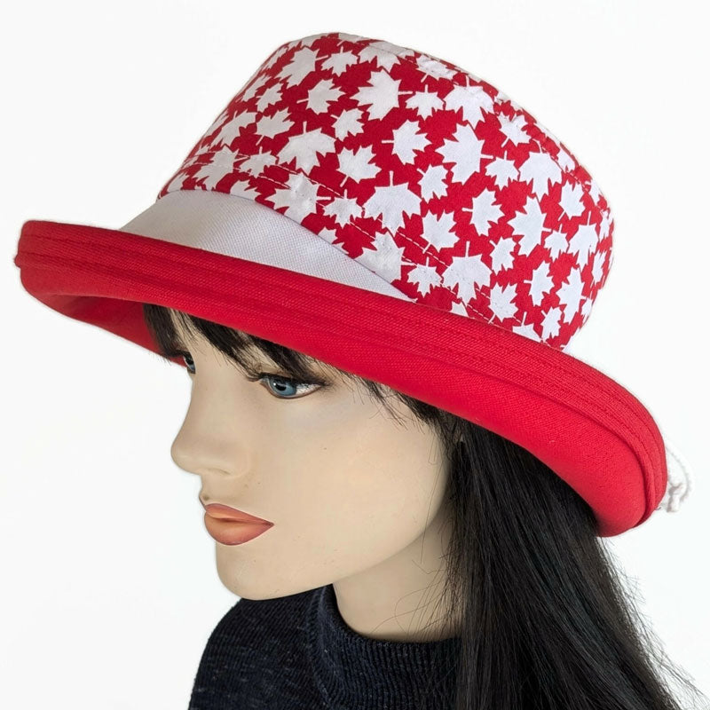 $74.95 CADCanada Sunblocker UV summer sun hat with wide brim, Canada red and white maple leaves, adjustable fit
