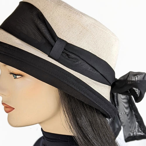 $65.98 CAD100-a Extra large bucket brim Sunblocker in neutral color with black trim, adjustable fit