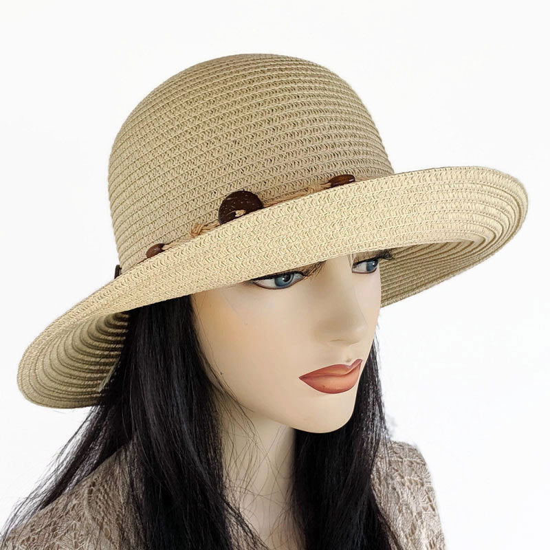 $23.65 CAD208 Wide Brim Straw Sun Hat with button trim