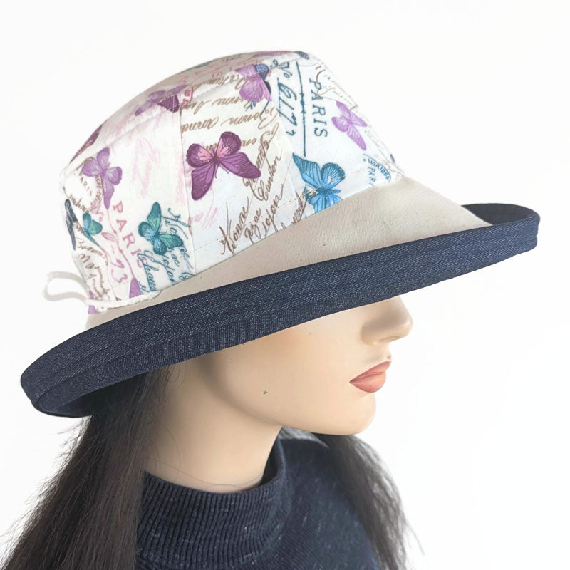 $74.95 CADSunblocker UV summer sun hat with wide brim, pretty butterflies with quilted detail, adjustable fit