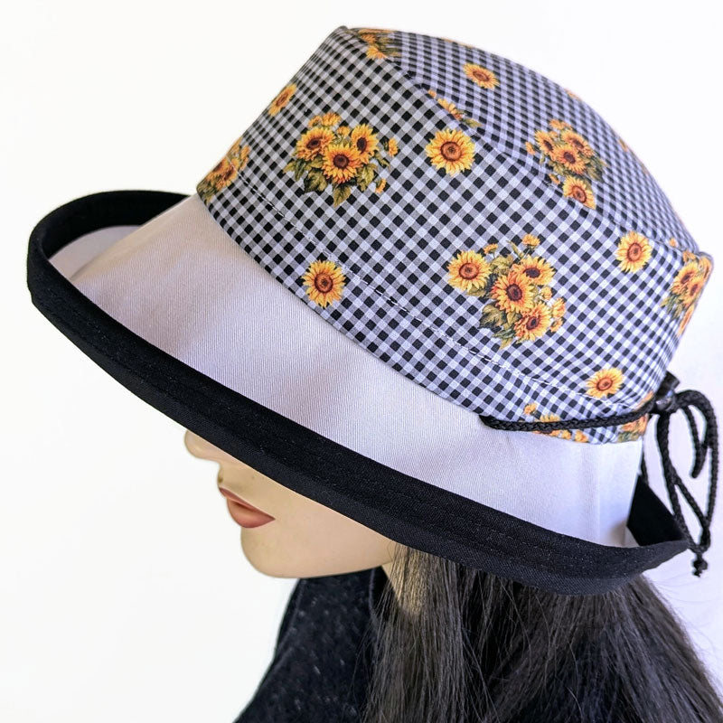 $74.95 CADSunblocker UV summer hat sun hat with wide brim, gingham check with sunflowers, adjustable fit