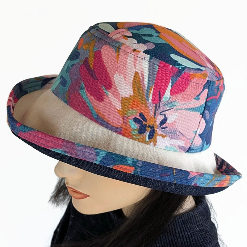 $74.95 CADSunblocker UV summer sun hat with wide brim, abstract floral watercolour inspired print, adjustable fit
