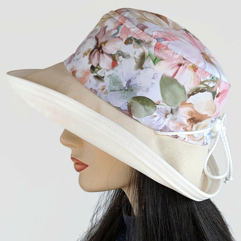 $74.95 CADSunblocker UV summer hat sun hat with wide brim, pastel dreamy floral, adjustable fit