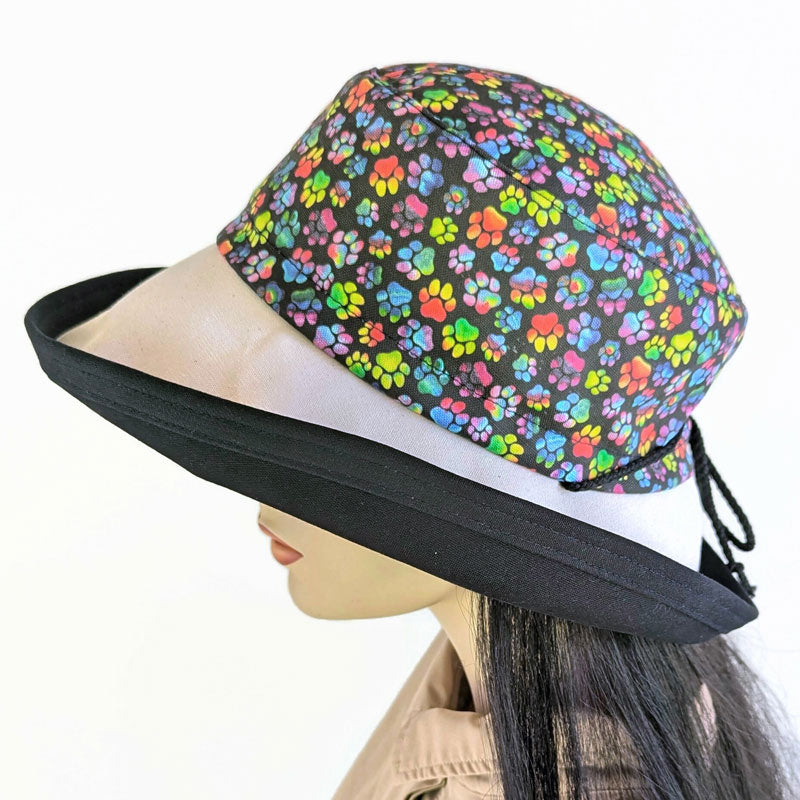 $74.95 CADSunblocker UV summer hat sun hat with wide brim, featuring rainbow paws print, adjustable fit