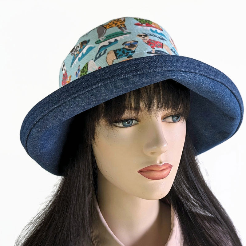 $74.95 CADSunblocker UV summer hat sun hat with wide brim, featuring surfing dogs, adjustable fit