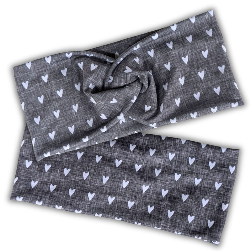 €9,95 EURPremium, wide turban style comfy wide jersey knit headband, white hearts on grey