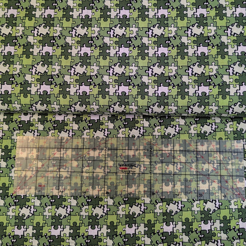 $9.95 CADQuilting weight Cotton, khaki puzzle pieces, by the yard