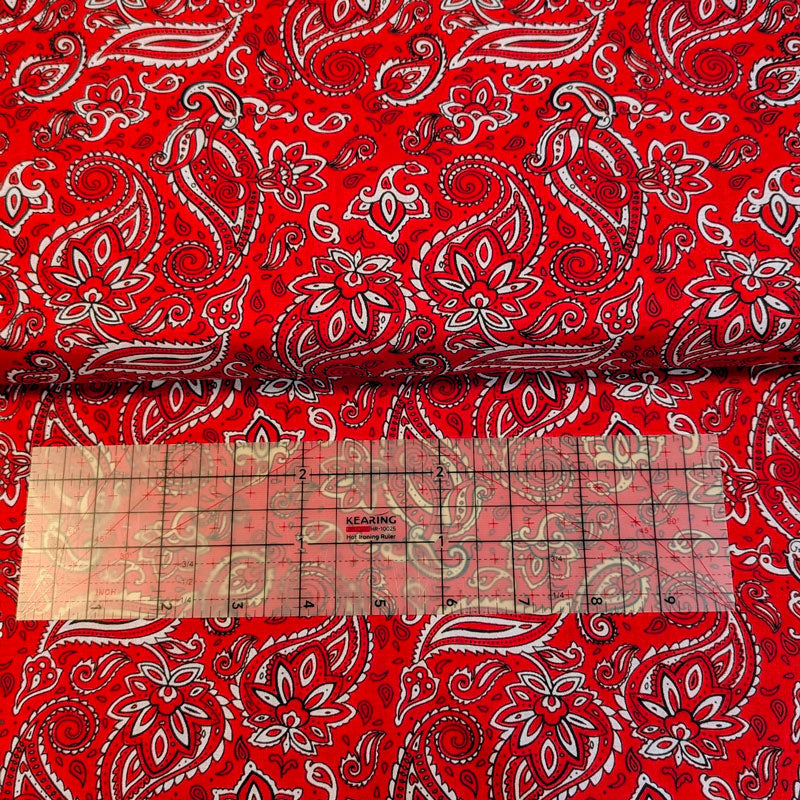 $14.50 CADQuilting weight Cotton, red paisley bandana print, sold by the yard