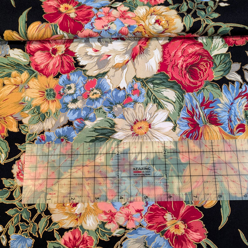 $24.95 CADQuilting weight Cotton, vintage floral fabric with gold detail, large floral print by the yard