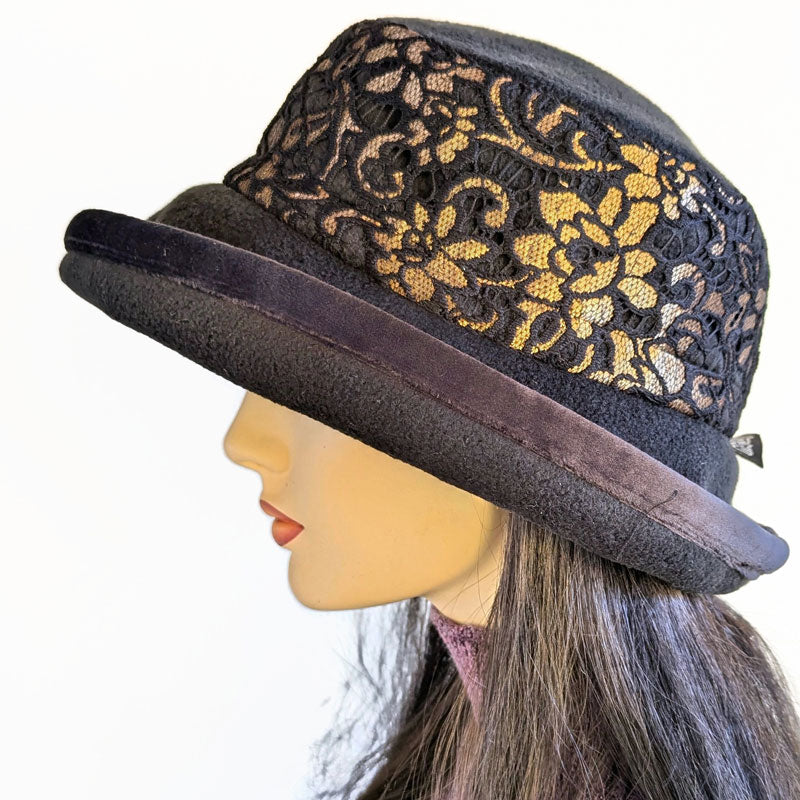 $18.95 CADPremium Winter Fashion Hat with velvet trim, black with gold lace band trim