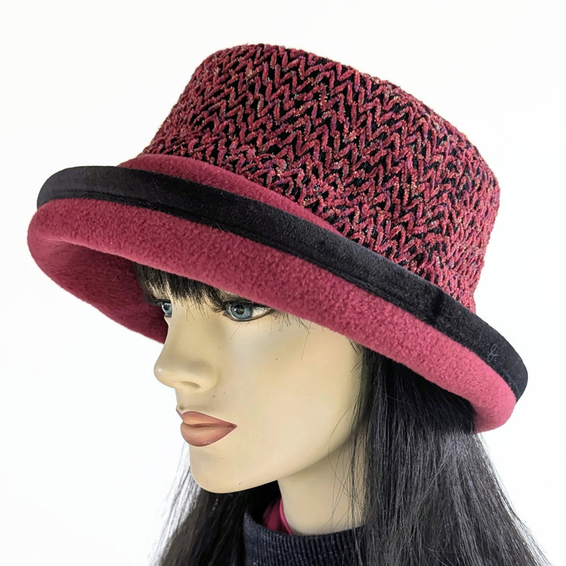 $65.00 CADPremium Winter Fashion Hat with velvet trim, burgundy chenille with black trim