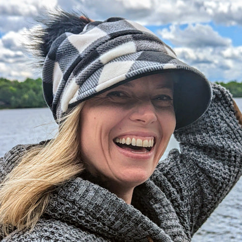 ÉpuiséFashion Pom Pom Cap in fleece with flattering visor and slouchy fit, assorted plaids